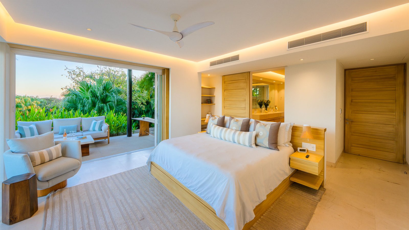 This no-expense-spared, fully refurbished, ground-floor apartment in Punta Mita must be the height of luxurious golf course living. Three beautiful bedrooms and an open living/dining and kitchen all have magnificent views over the 4th fairway of Bahia course and across the Bay of Banderas. All face a large, covered terrace with pocket sliding doors that let the tropical, breezy exteriors flow seamlessly into the bright, modern interiors. A fourth bedroom with two bunk beds offers a fun, comfortable space for younger guests. Lots of love has been lavished on a custom-made interior design theme with plenty of comfy indoor and outdoor furnishings to enjoy for entertaining, relaxing, or just simply hanging out. With 270° unobstructed views, itʼs the perfect spot to watch the whales pass by as they breed in Banderas Bay during the winter months.