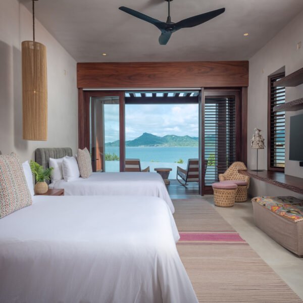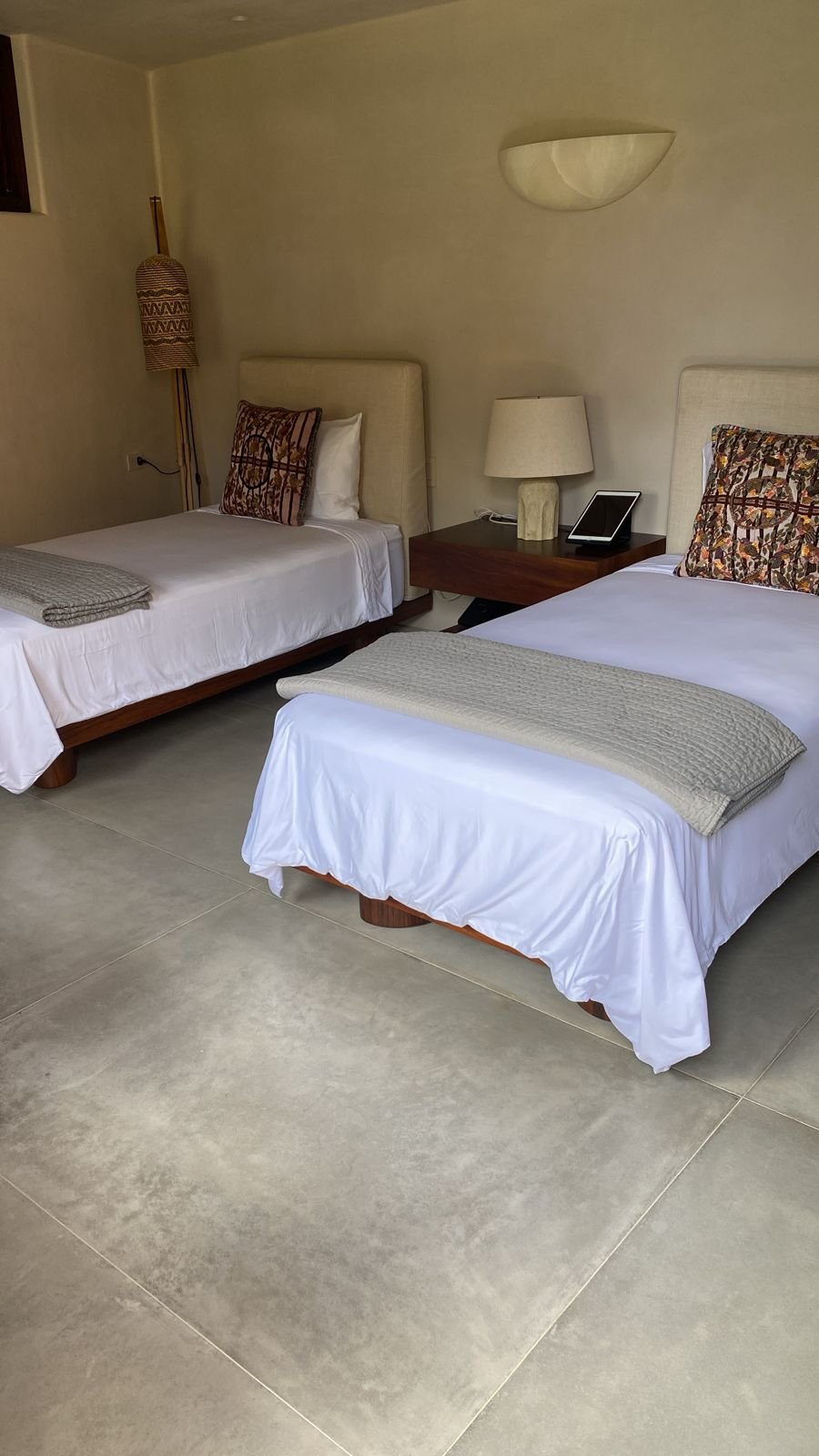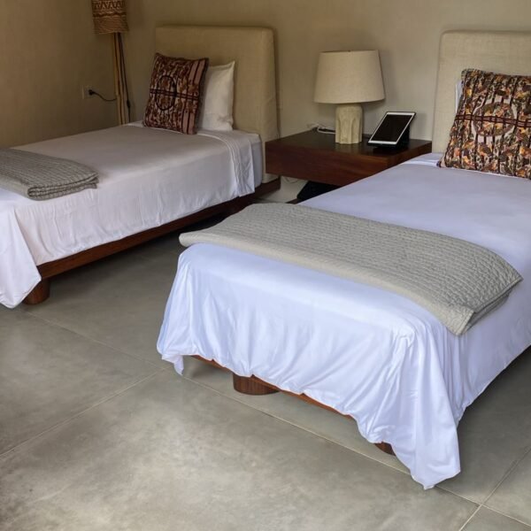 Two twin-size beds, En-Suite bathroom, Located next to the yoga deck