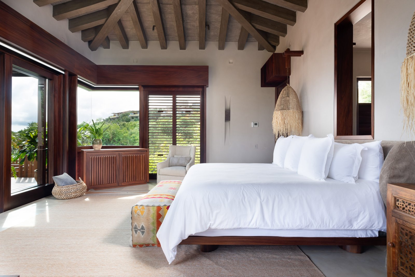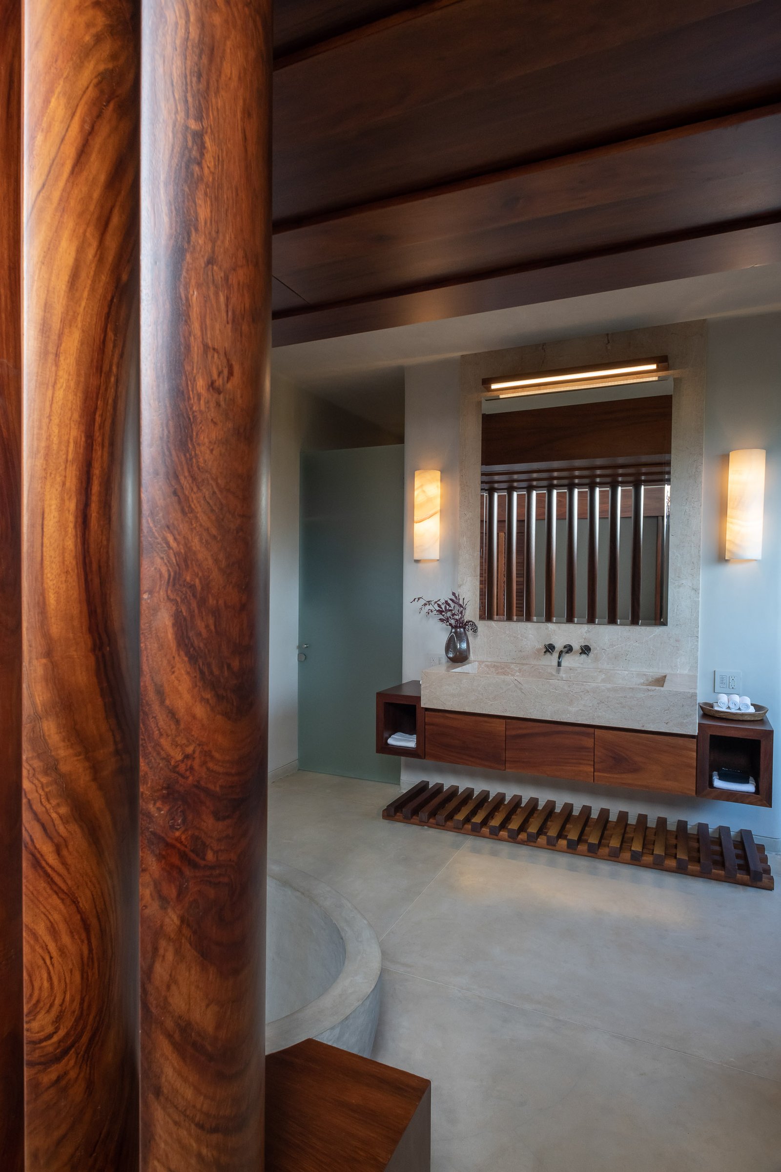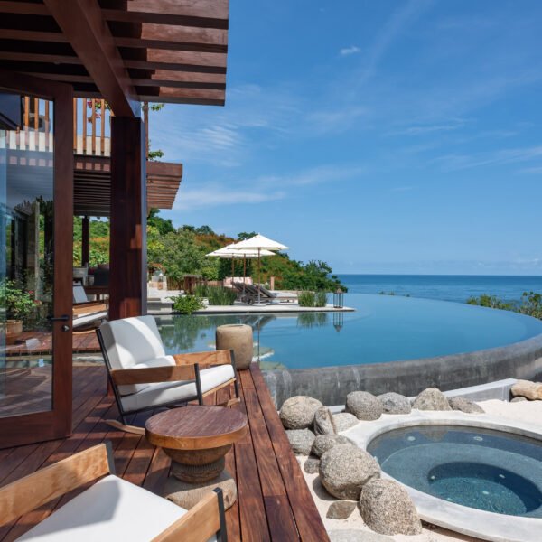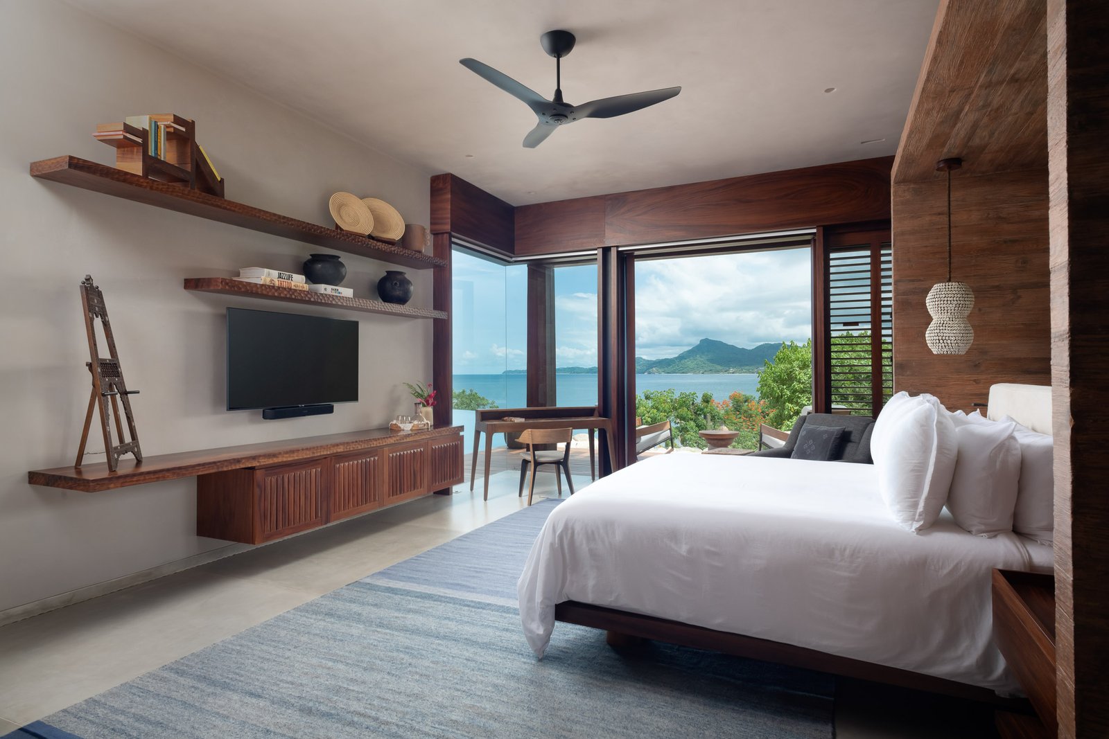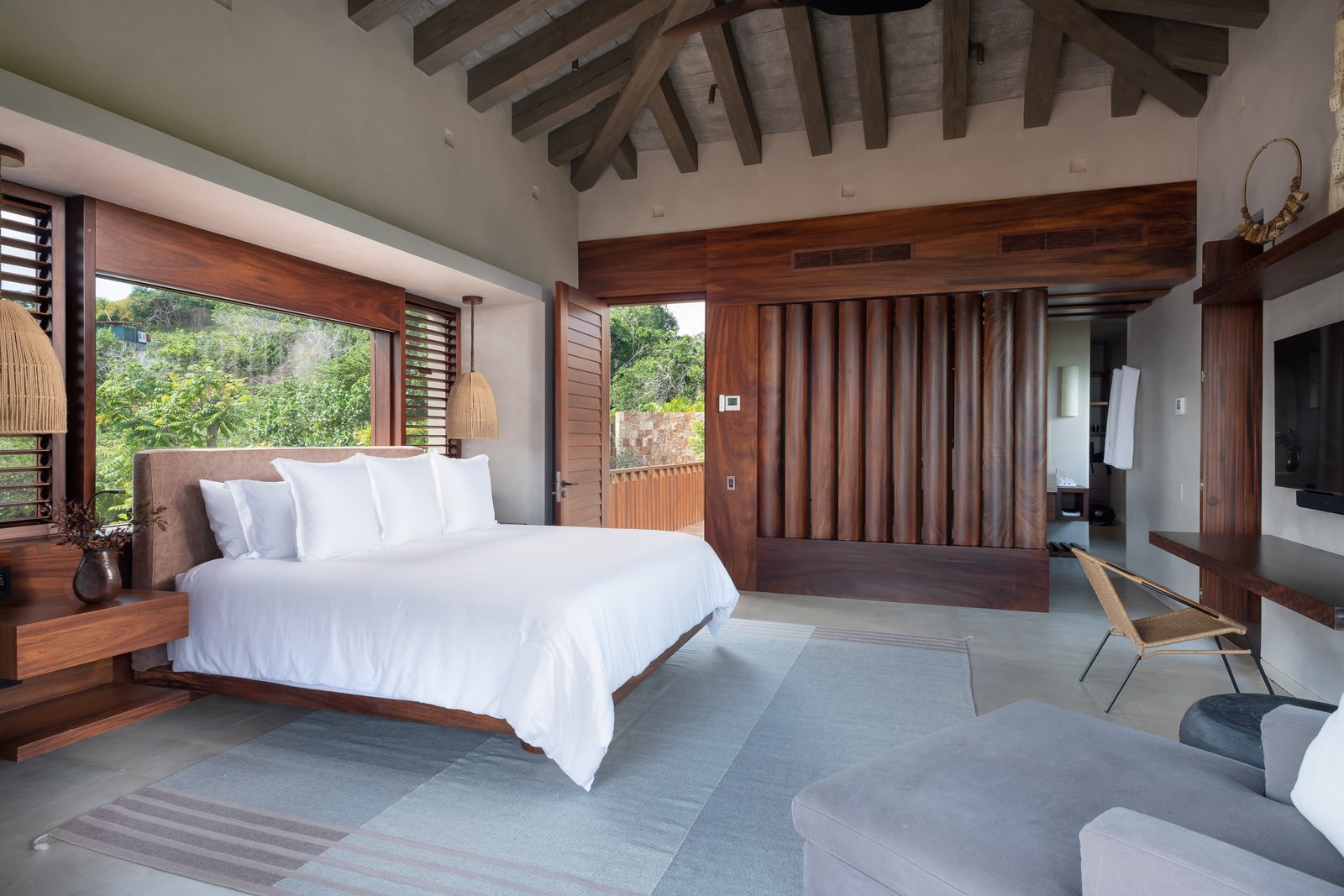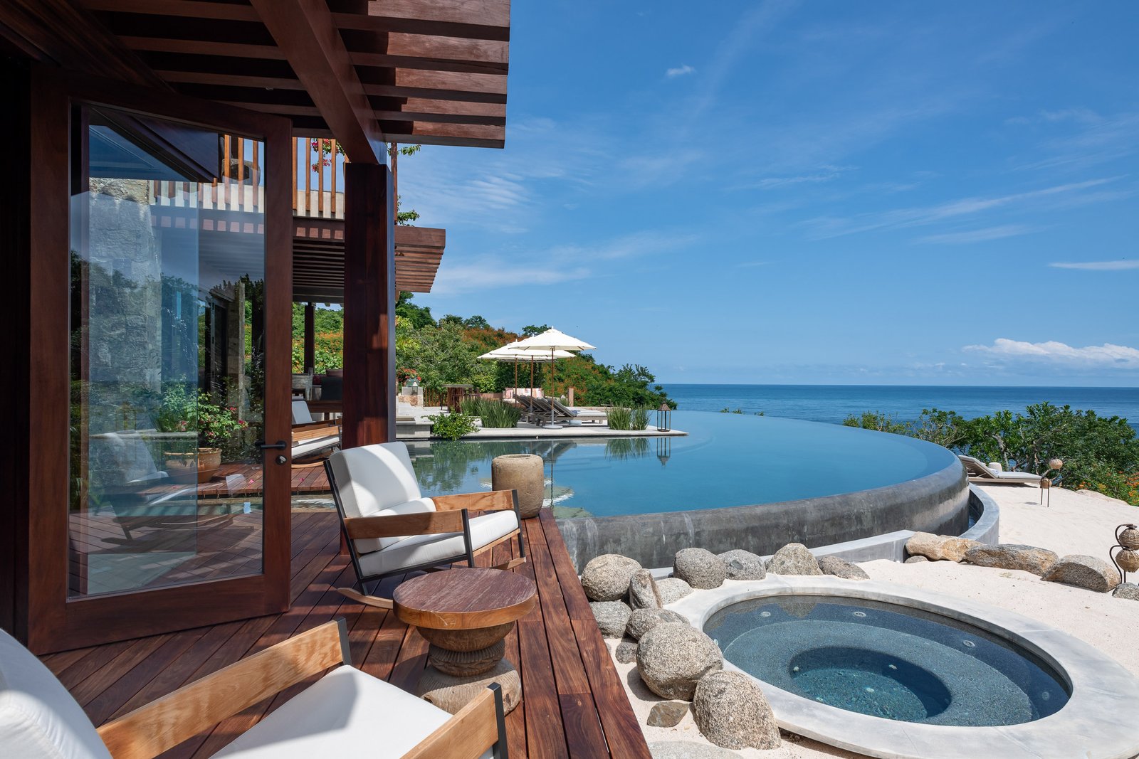 King-size bed, En-Suite bathroom, Walk-out deck to the pool, Soaking tub, Indoor / outdoor shower, Desk with sweeping views, Private hot tub