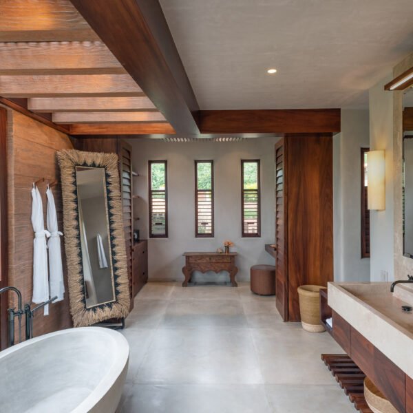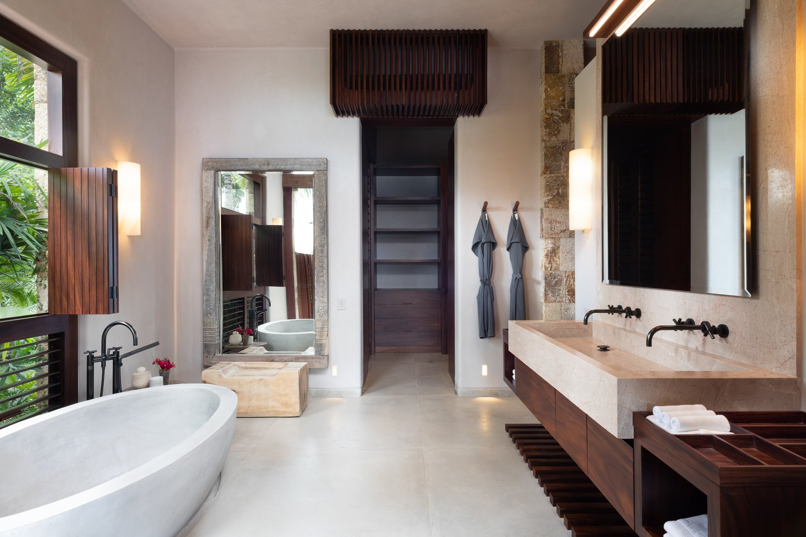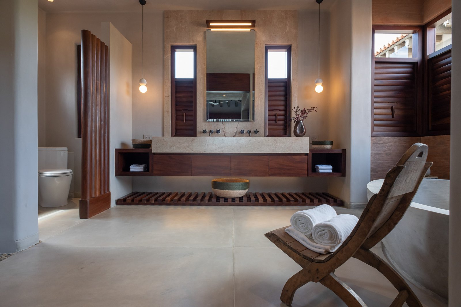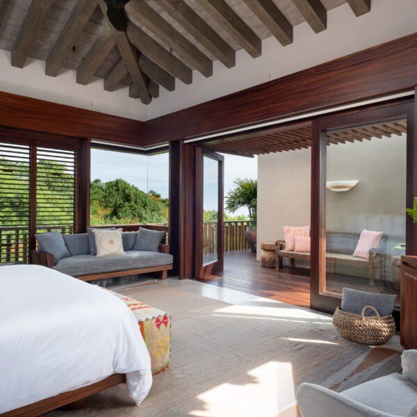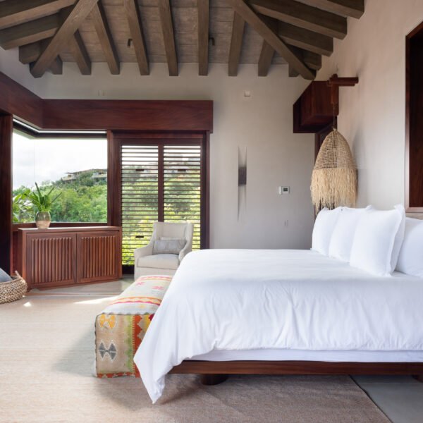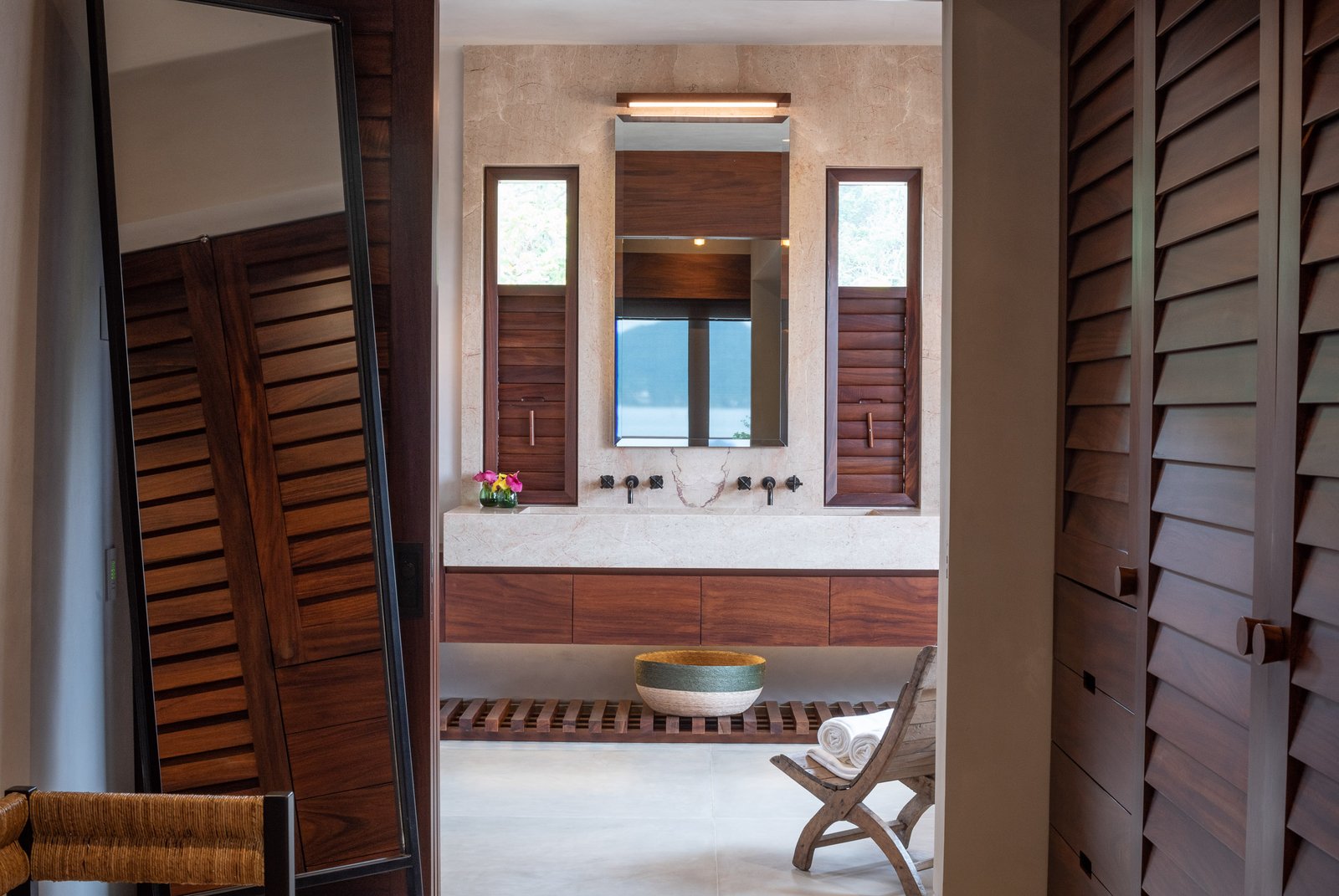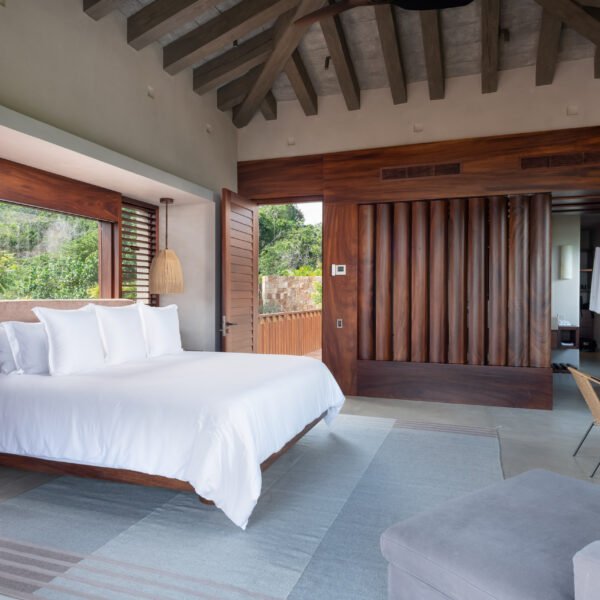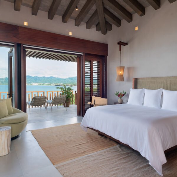 King-size bed, En-Suite bathroom, Walk-out deck to the pool, Soaking tub, Indoor / outdoor shower, Desk with sweeping views, Private hot tub