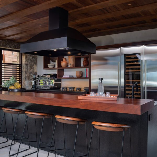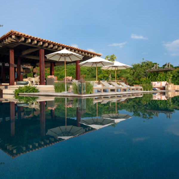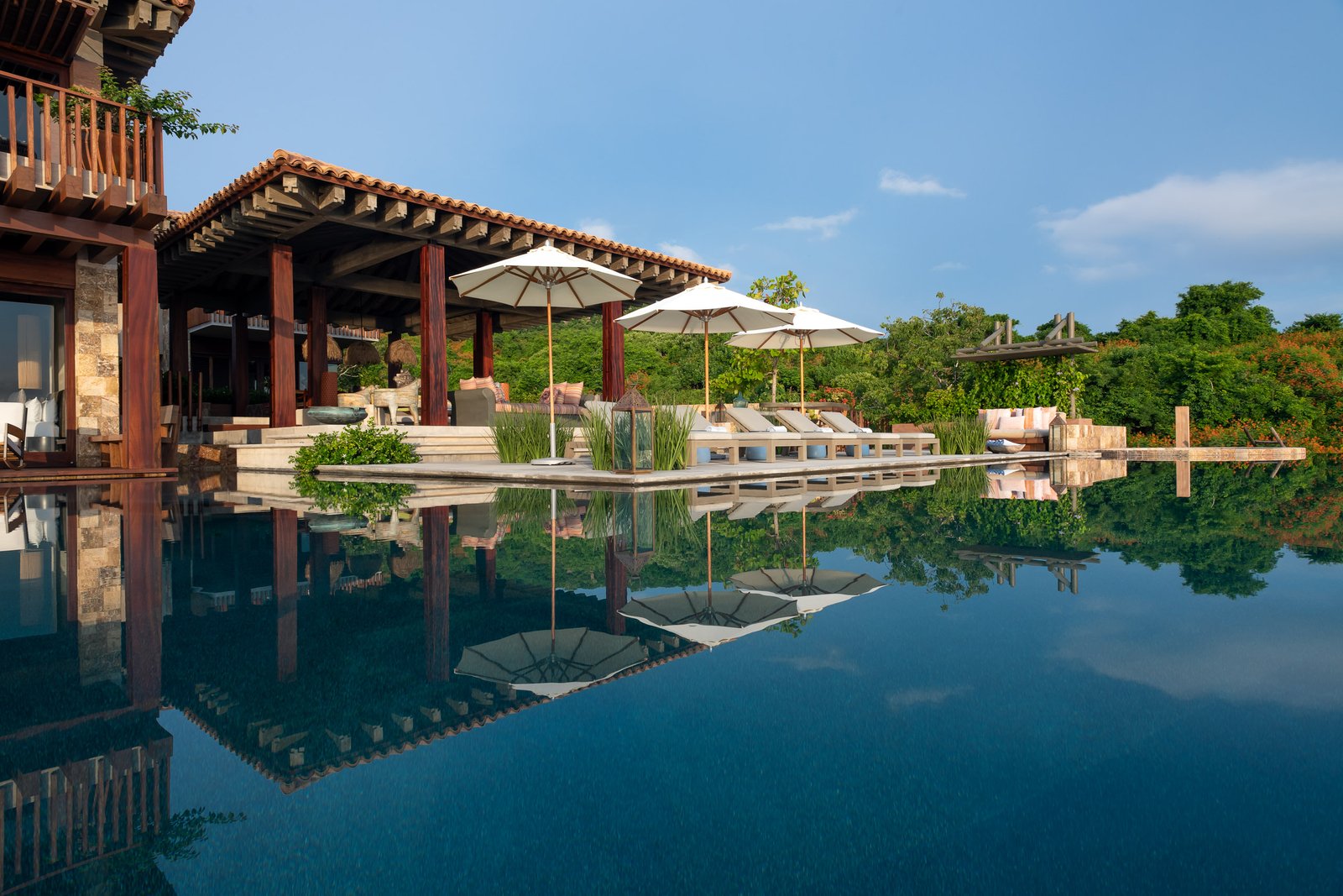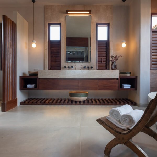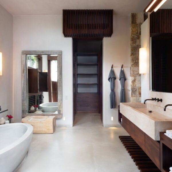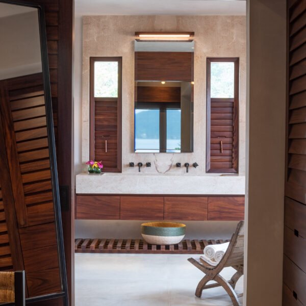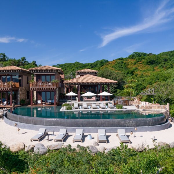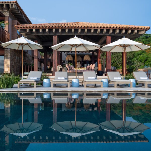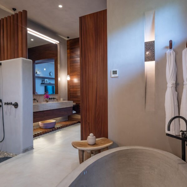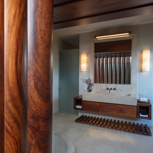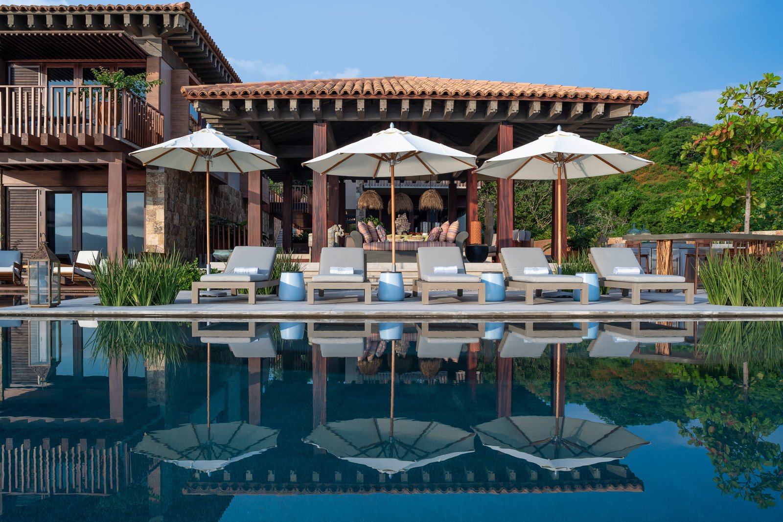 King-size bed, En-Suite bathroom, Walk-out deck to the pool, Soaking tub, Indoor / outdoor shower, Desk with sweeping views, Private hot tub