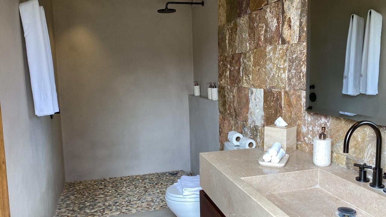 King-size bed, En-Suite bathroom, Private deck, Sweeping views from the shower, Soaking tub, View the ocean