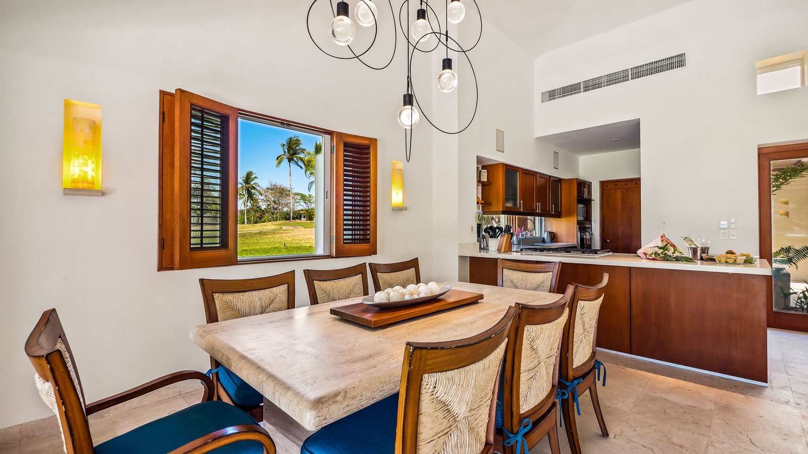 Positioned in one of the closest spots to the ocean in Las Palmas, Punta Mita, this refined villa offers front-row views of the Pacific and the famed “Tail of the Whaleˮ rock formation and signature golf hole—a rare vantage point that blends oceanfront beauty with premier golf-front prestige. Just 400 meters from the beach and overlooking the fairways of the Pacifico Golf Course, this stylish retreat is designed for comfort, elegance, and ease. The villa features spacious living areas, a shaded terrace, and an al fresco dining